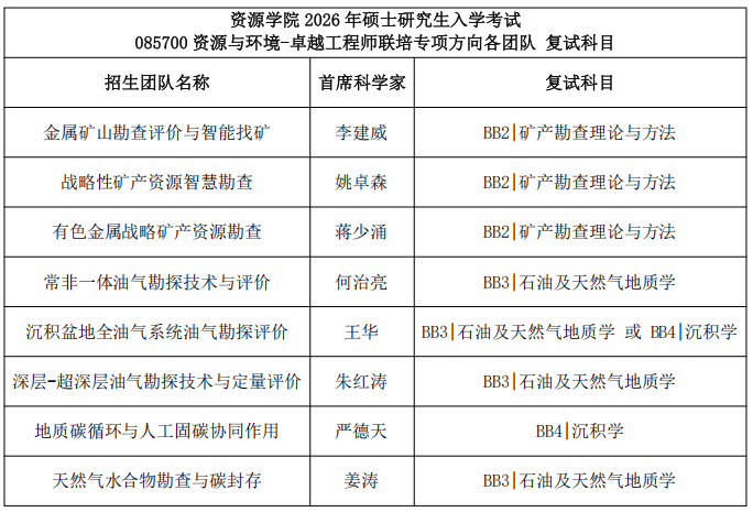 成人直播 2026年硕士研究生入学考试085700资源与环境专业卓越工程师联培专项方向各团队复试科目