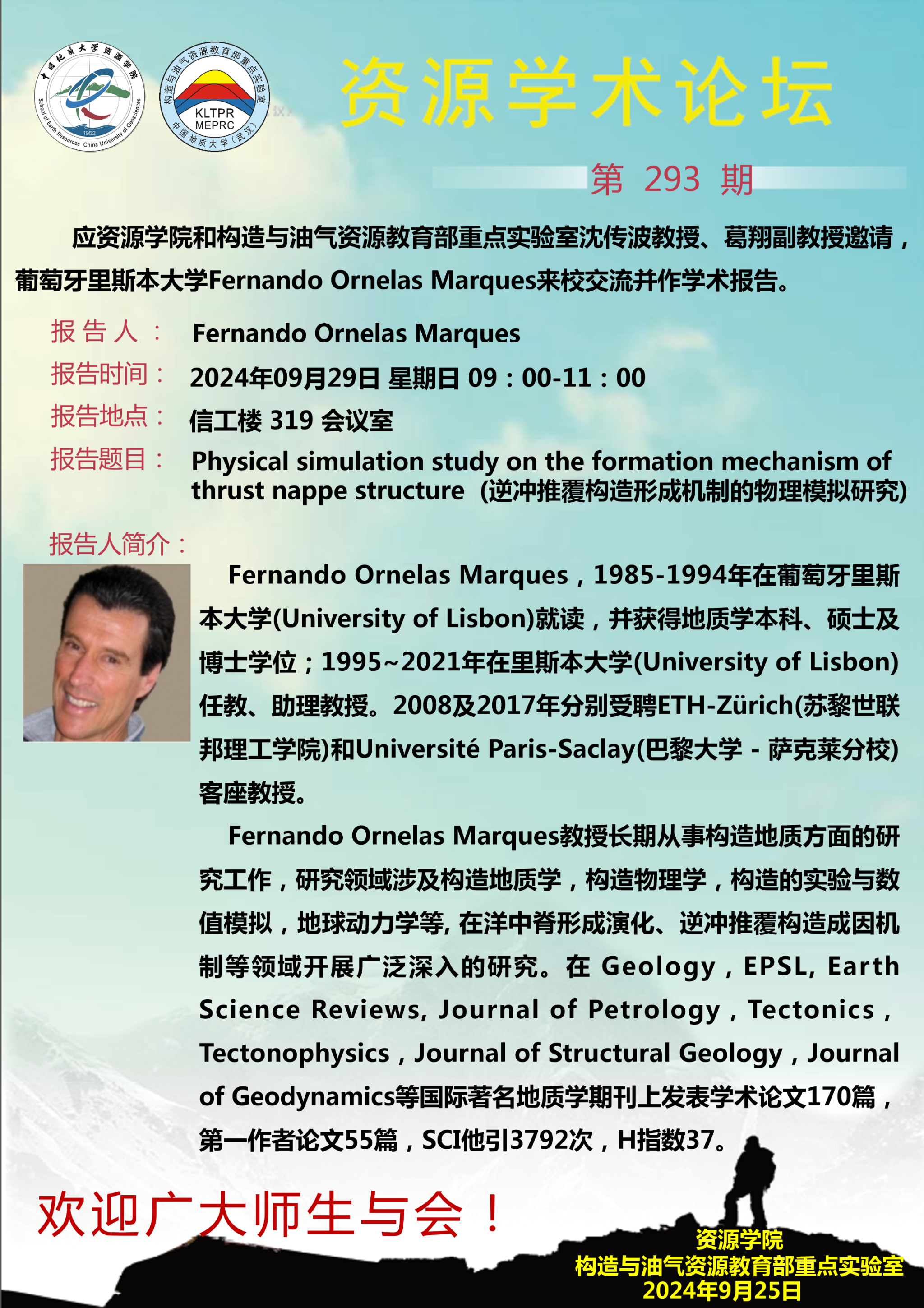 【9月29日】第293期资源学术论坛:Fernando Ornelas Marques学术报告