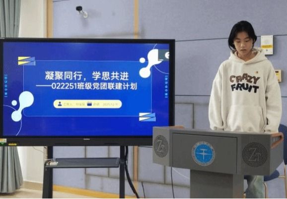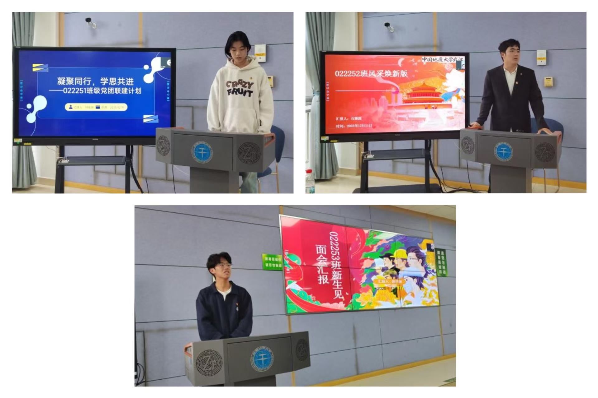 2025级石油工程班级团支书介绍和党团联建方案。刘瑶瑶、石璐源、赵子渊三个班级团支书分别从成员构成、学习情况、班级活动和班级文化等方面介绍班级成人直播概况