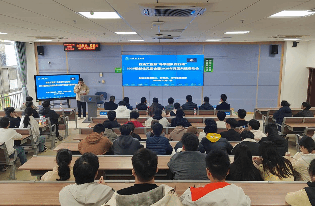 党委副书记谭文伦,党建辅导员彭鑫,石油工程系党支部书记张恒、主任李恒,副主任骆杨、杨宝林、孟庆帮,科研教学团队教师(导学团队)、2022级本科生石骏鹏、2025级驻班党员和2025级石油工程系本科生参加活动。会议由石油工程专业本科生党支部书记韩贻皓主持。