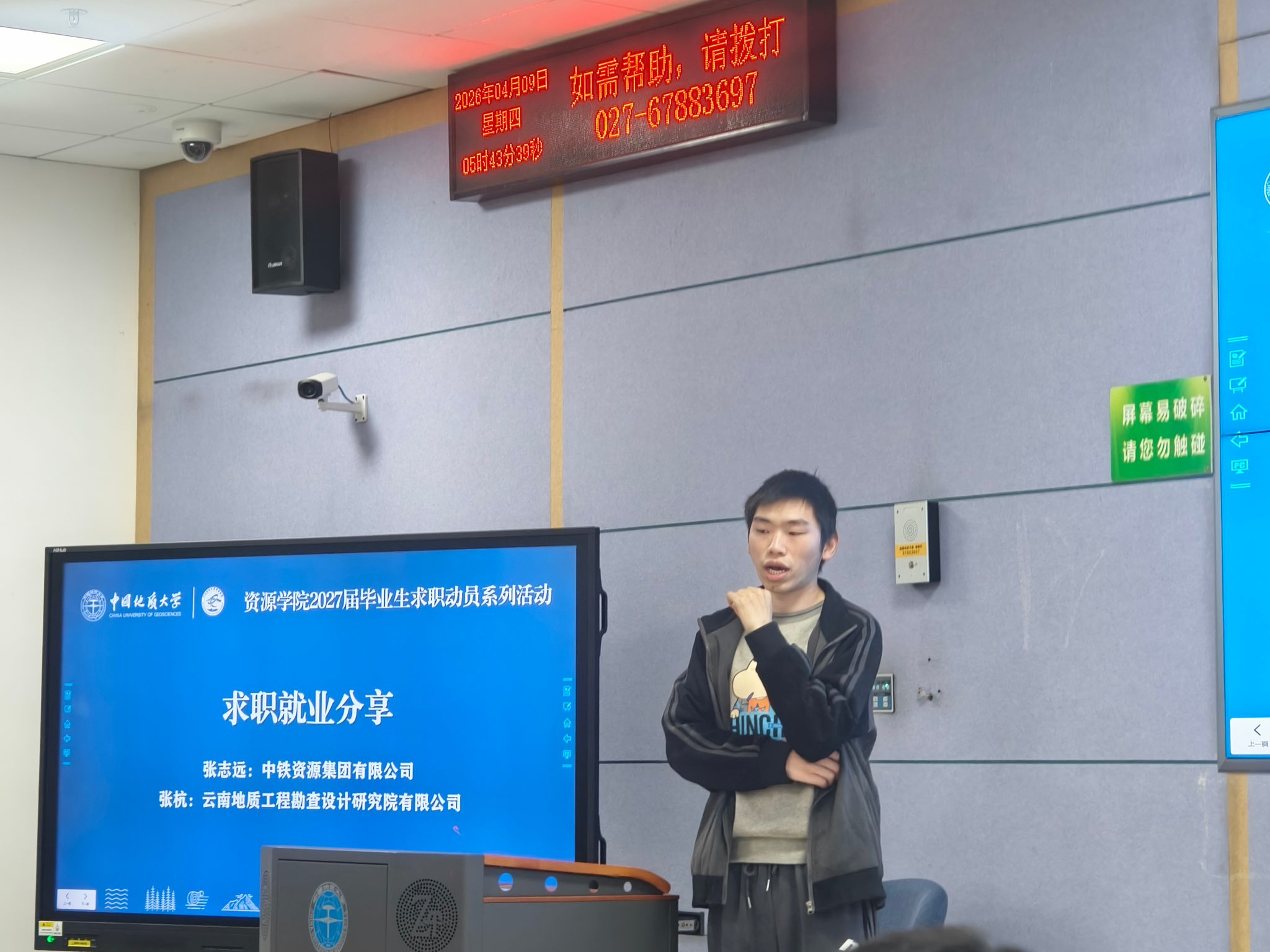 2022级本科生、签约云南地质工程勘察设计研究院有限公司的学生张杭分享了求职实战经验:主动投递简历后,争取到现场面试或实习机会,能大幅提高成功率。她讲述自己曾向多家单位投递简历未获回复,后通过参加校园招聘会与HR当面沟通,获得实习机会并最终转正。她鼓励同学们“跑起来”,多参加线下双选会,带着简历直接与面试官交流,比线上海投更有效。