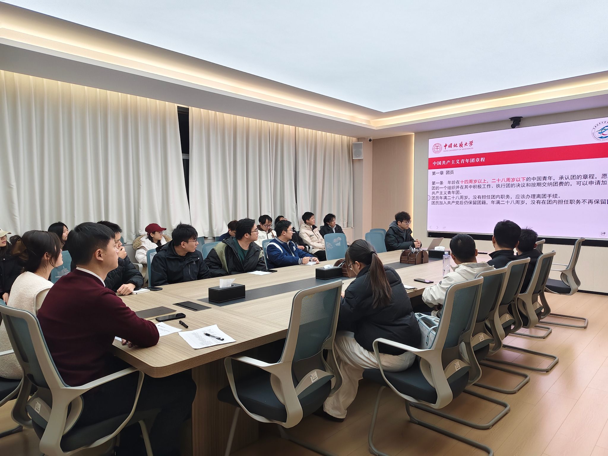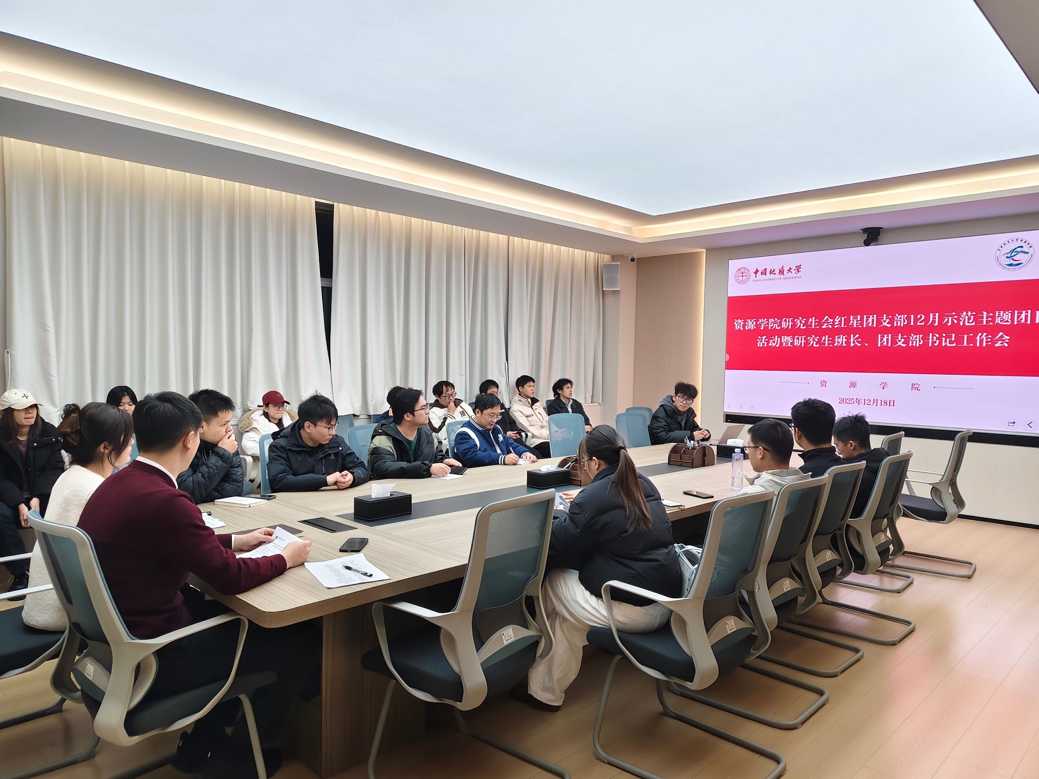 在主楼330会议室举行了研究生会红星团支部12月示范主题团日活动暨研究生班长、团支部书记工作会。成人直播团委书记刘睿,辅导员林心悦,兼职辅导员杨玉娥、裴秀璟,研究生会红星团支部成员,全体研究生班长、团支部书记参加会议。会议由刘睿主持。