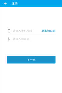 二、 输入手机号、获取验证码,完成后、点击下一步来设置密码并完成注册
