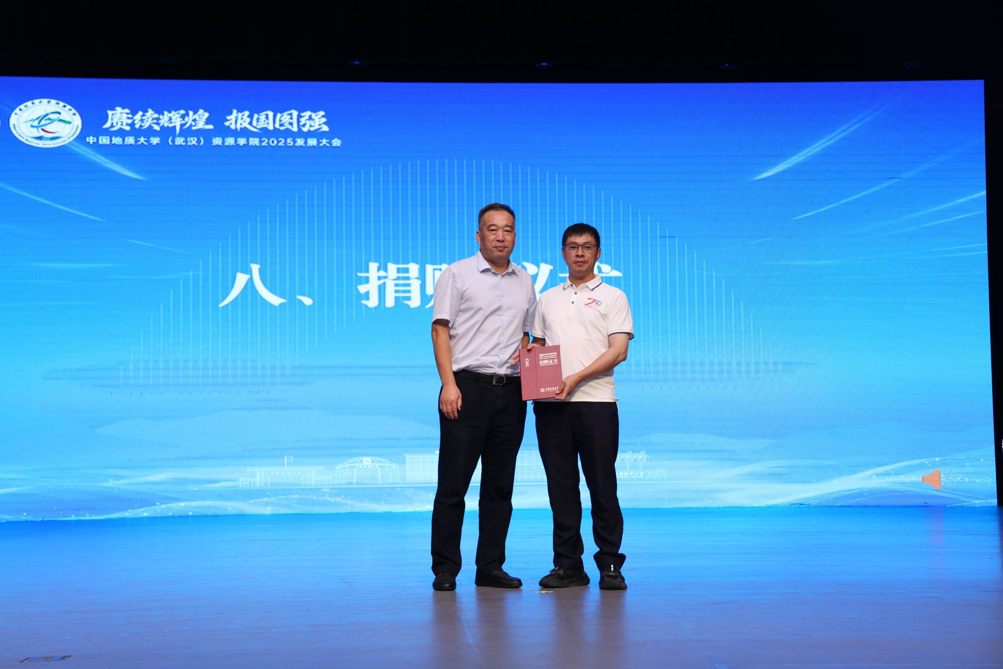 大会举行捐赠仪式。毕业20周年的全体校友为成人直播捐赠了白钨矿矿标,用于支持成人直播教学和展览。成人直播