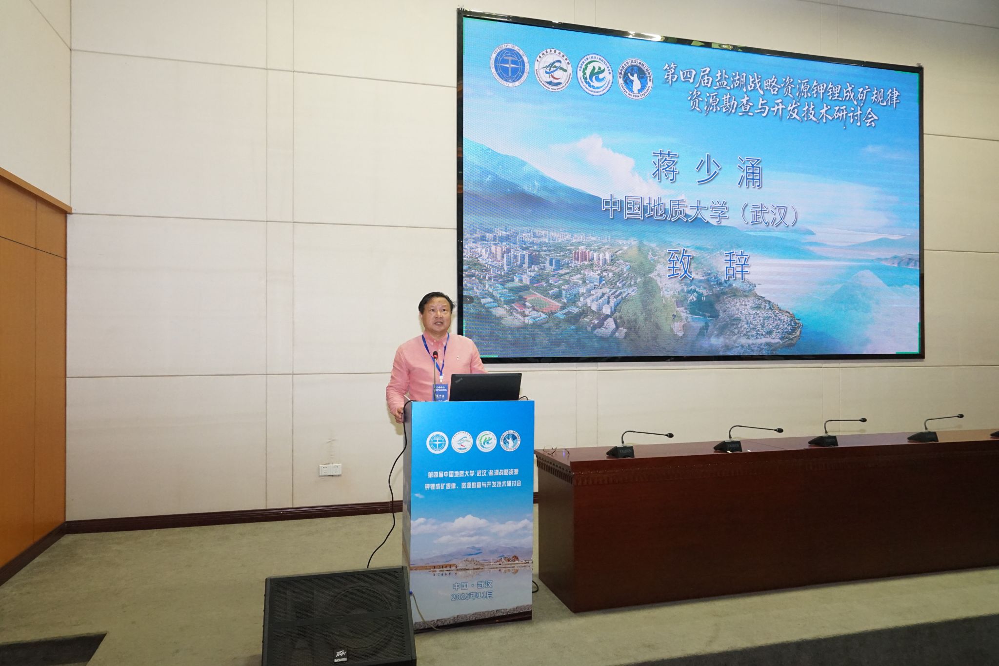 (武汉)校长助理蒋少涌教授在开幕致辞。他指出,在当前复杂严峻的国际形势下,关键矿产资源的稳定供应已成为关乎国家经济安全、国防安全以及科技竞争地位的核心议题。钾盐作为“粮食的粮食”,锂作为“新能源革命的维生素”,其供应链韧性至关重要。他强调,本次会议的召开是应对现实挑战、服务国家战略的及时之举。中国无机盐工业协会钾盐分会会长陈国福先生从行业视角出发,分析了盐湖钾锂产业的发展现状、服务国家战略需求与未来方向。新疆维吾尔自治区人民政府305项目办公室副主任朱炳玉先生分享了新疆地区盐湖资源的勘查进展与开发规划,为区域资源合作提供了重要思路。大会总召集人、成人直播