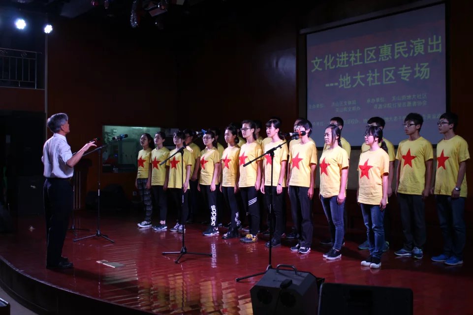 下午2点半,金婚老人们胸前戴着红花,手拉着手,在志愿者的搀扶和陪同下喜气洋洋的迈进了工会演播厅大门,随着民族乐器演奏《战士舞曲》的开始,联欢会拉开帷幕。除志愿者同学为此次联合会精心准备的节目外,其他节目都是由老人们自发建立的文艺组织进行表演,《情醉黄鹤楼》节目中,12位平均年龄60岁的退休女老师翩然地舞动,优雅地变换队形,一颦一笑丝毫不似花甲老人。一曲《刘海砍樵》节目中更是唱出了老人们的活力,赢得阵阵掌声。表演《刘海砍樵》的盛宏模老人今年已经80岁了,尽管高寿,但盛老师依然精气神十足,不仅歌唱的好,闲暇时还会带领地大社区的居民跳广场舞一起锻炼身体。谈到自己面对生活的心态时,盛老师引用了我国著名哲学家冯友兰先生的话:“微笑着面对生,优雅的面对老,从容的面对死。”在此基础上,盛老师又添加了自己的一句感悟“乐观的面对病”,这样,人生四大常事——生老病死就全都齐了。