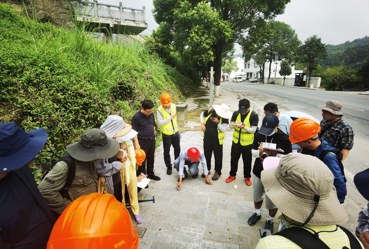 7月26日,高复阳一行赴黄花场实习路线看望实习师生和第二批实习备课教师。高复阳一行边看、边听、边问,察看同学们的野外记录簿,与老师们同学们一起观察讨论金钉子地层剖面,收集化石标本。