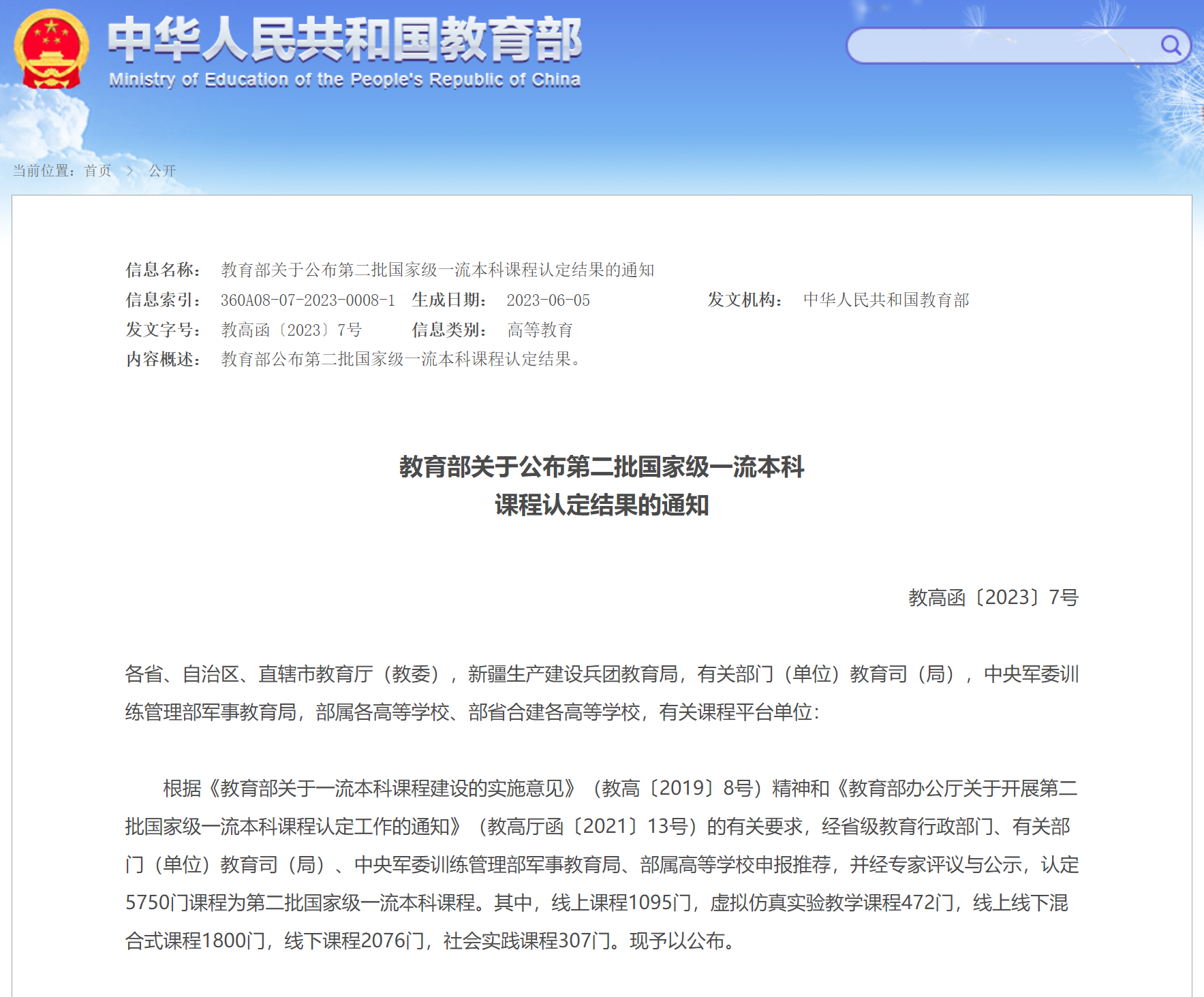 近日,教育部公布第二批国家级一流本科课程认定结果,成人直播