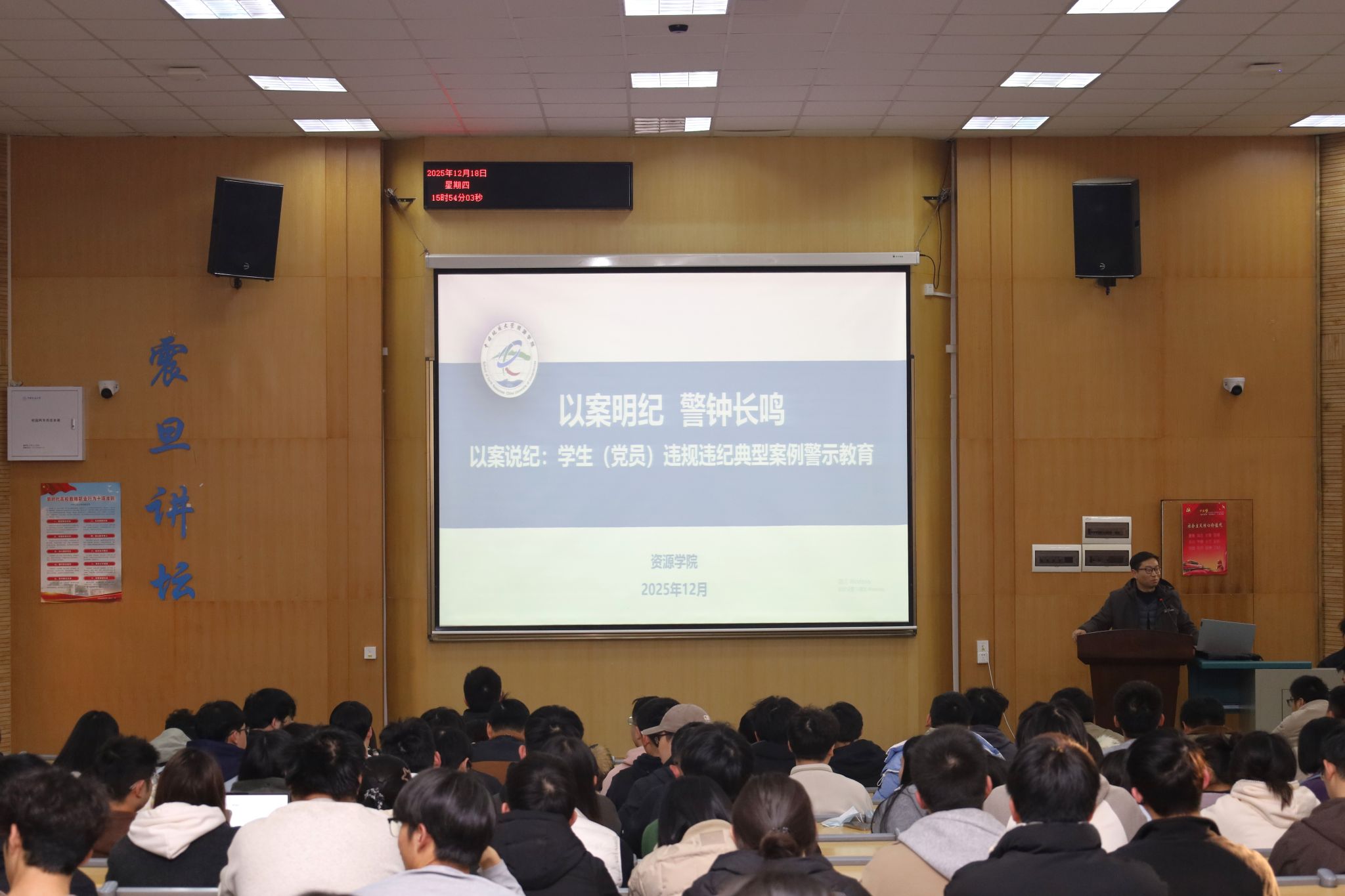 通讯 彭鑫 摄影 张少龙)2025年12月18日,成人直播 在教三楼109开展学生党员违纪警示教育专题活动。成人直播党委副书记谭文伦出席会议并担任主讲人,成人直播本硕博全体学生党员和预备党员参加活动。活动由成人直播学生党建办公室主任彭鑫主持。