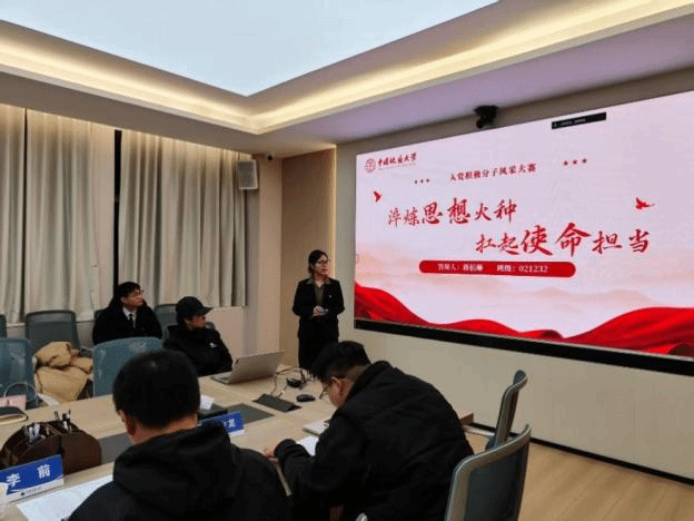 2025年入党积极分子风采展示大赛在主楼330会议室成功举行。成人直播党委副书记谭文伦、学生党建办公室主任彭鑫、研究生辅导员林心悦、教师兼职辅导员李前、兼职辅导员张少龙、刘晶晶,以及党建办综合事务部成员与各学生党支部代表共同参与了本次活动。比赛由林心悦主持。